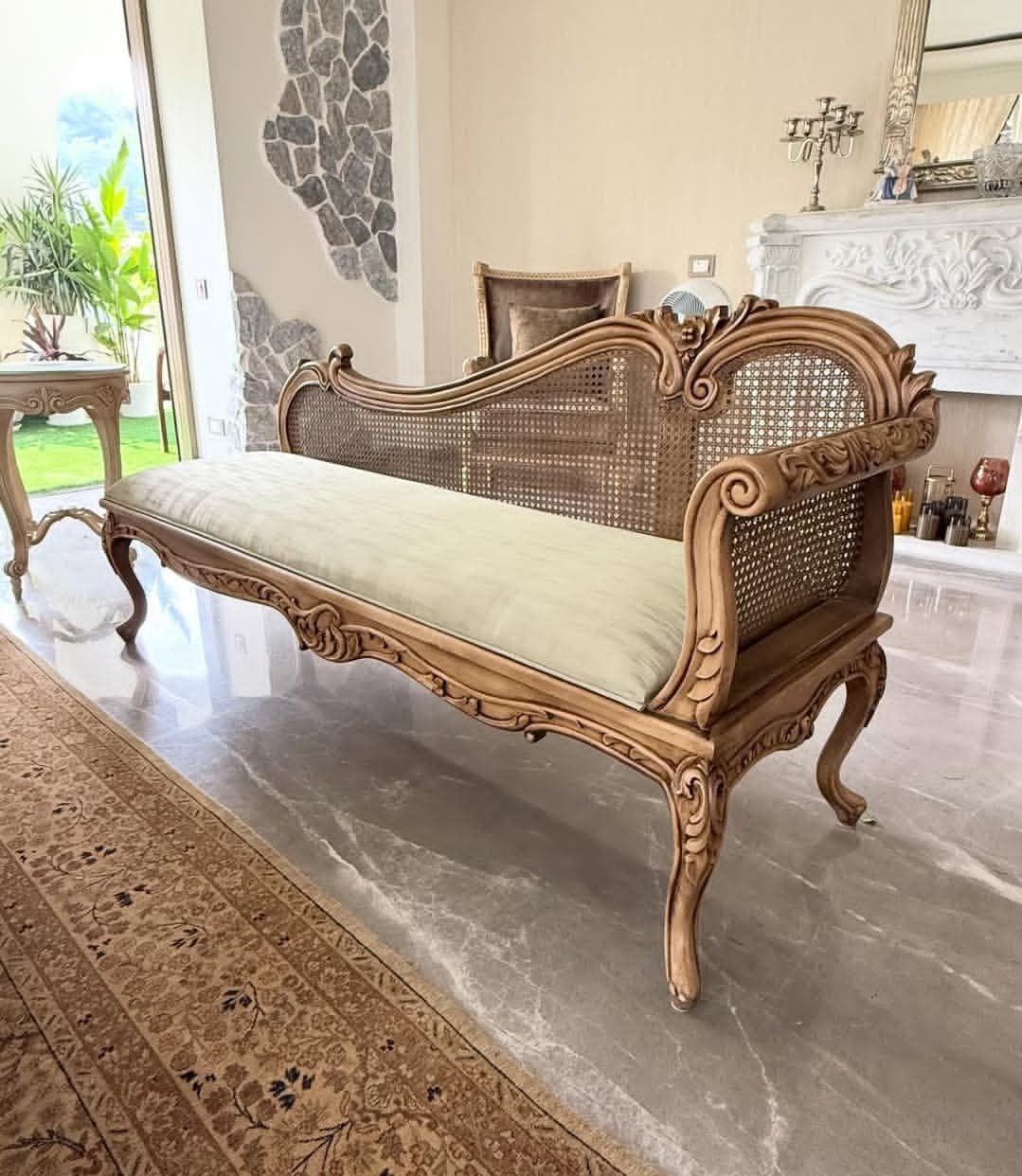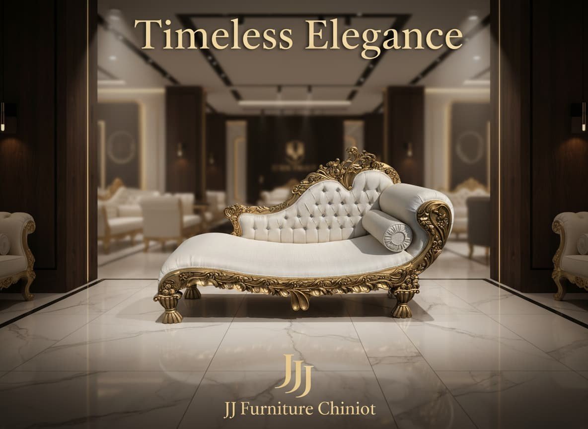 This stunning chaise lounge-style dewan is perfect for creating a royal ambiance in your home. Whether placed in a drawing room or bedroom, it adds a premium touch to your interior.